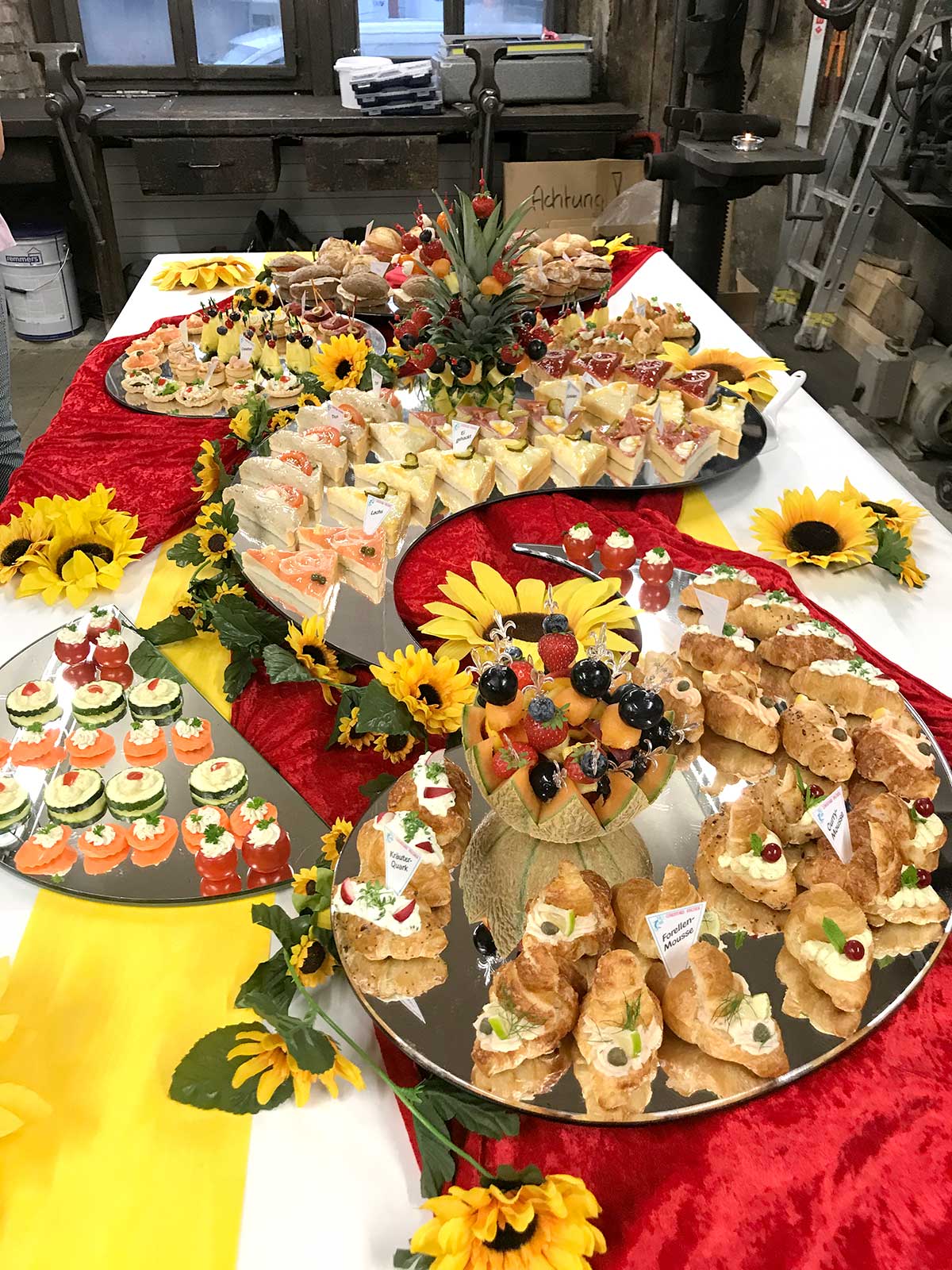 Der Abend begann für alle Mitarbeitenden im Trockenen. In der frisch renovierten «alten Schmitte» durfte die Belegschaft einen fantastischen Apéro in gemütlicher Atmosphäre bei Kaminfeuer und inmitten alter Werkzeuge einnehmen.