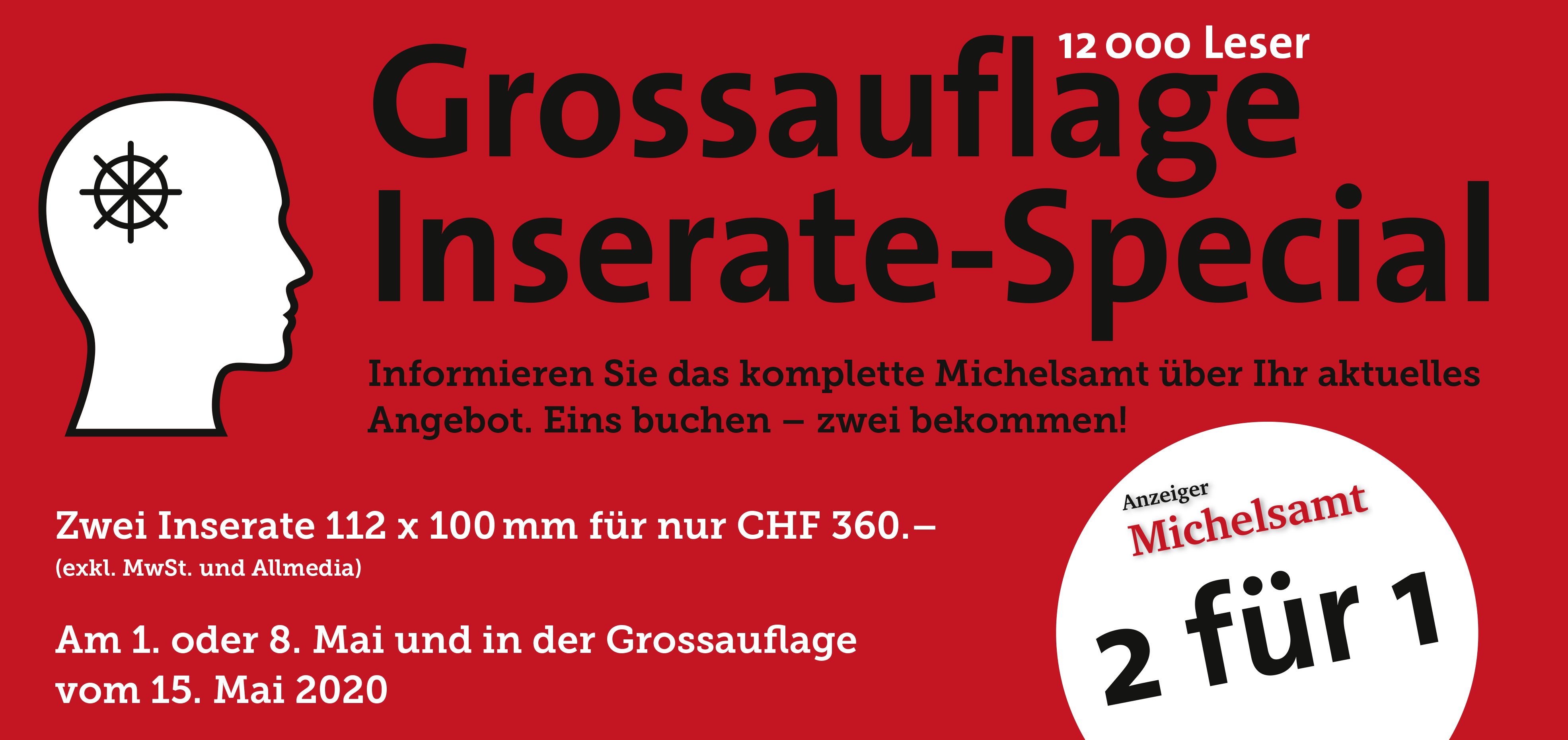 22. April 2020 Inserate-Special Jetzt inserieren und über das aktuelle Angebot informieren! Und von 2 für 1 profitieren – eins buchen und zwei bekommen.