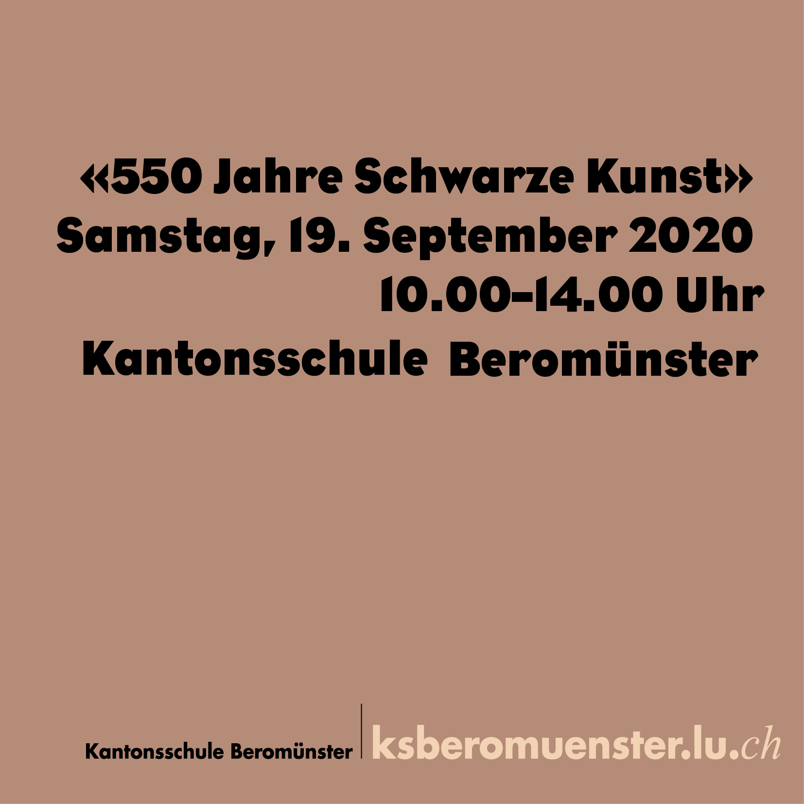 In Beromünster wurde 1470 schweizweit das erste Buch gedruckt. Der Drucker Helias Helye veröffentlichte ein 600-seitiges Wörterbuch zum Bibelstudium. Die Kantonsschule Beromünster widmet diesem Ereignis eine öffentliche Jubiläumsausstellung mit spannenden Themen rund um den Buchdruck und die damit verbundenen Berufe. In der Aula der Kantonsschule Beromünster ist die historische Druckpresse, die auch im Zwingli-Film ihren Einsatz hatte, zu besichtigen: Das Publikum erhält Einblick in das Druckerhandwerk vor mehr als 500 Jahren. Daneben werden Themen im Kontext des Spätmittelalters und der durch die Erfindung der Druckpresse ausgelösten Medienrevolution vorgestellt. Dabei stehen Fragen zur Verbreitung, Konservierung, Tradierung und Vermittlung von Wissen im Zentrum – am Ort, wo auch heute täglich Wissen erarbeitet, vertieft und erweitert wird.